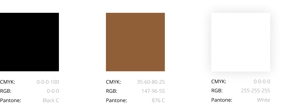Основные цвета: классический черный и медный. Белый цвет используется для фона или инверсного текста.