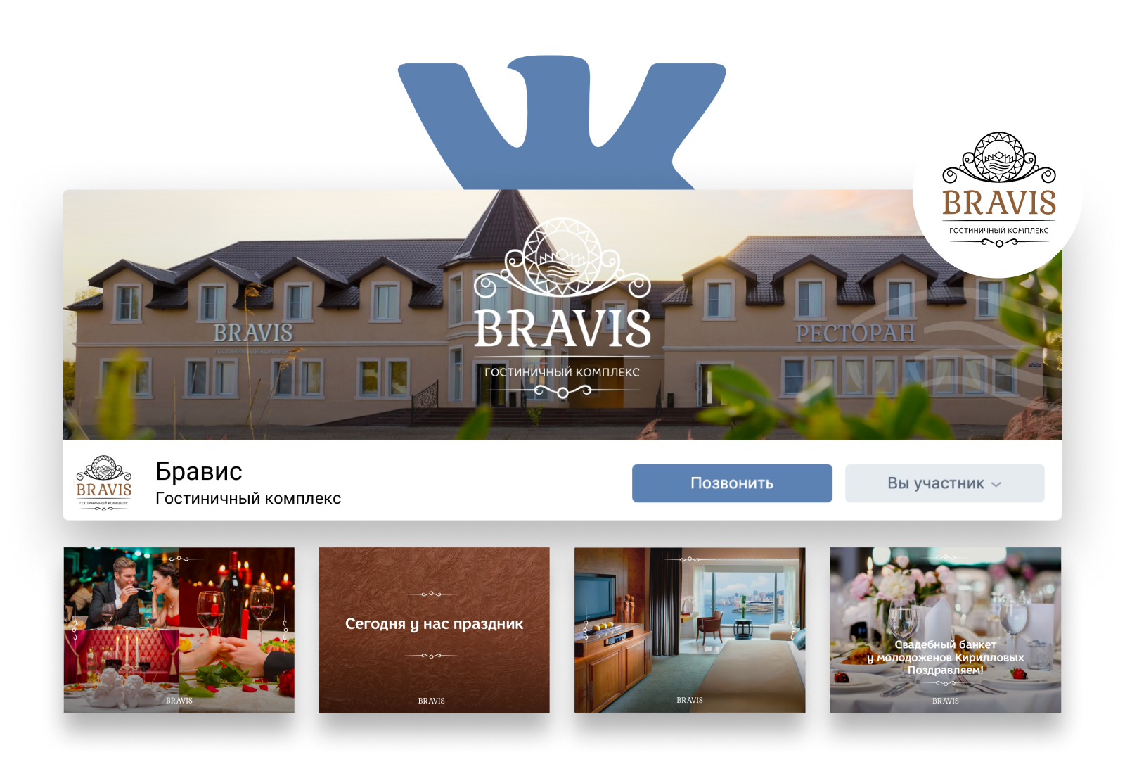 Bravis это единственный гостиничный комплекс который расположен в городе на набережной озера Неро. Близость к воде, торжественность интерьеров нашли отражение в логотипе.