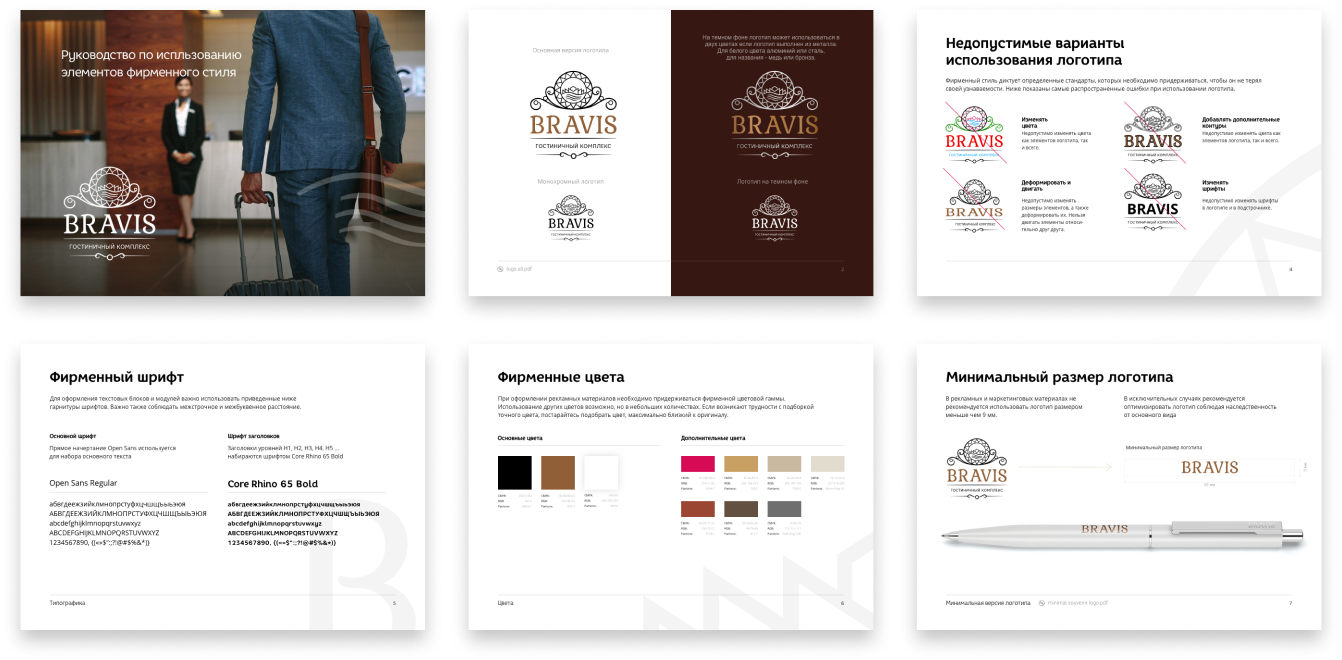 В логобуке прописаны основные правила использования логотипа, а так же фирменные цвета и фирменный шрифт.
